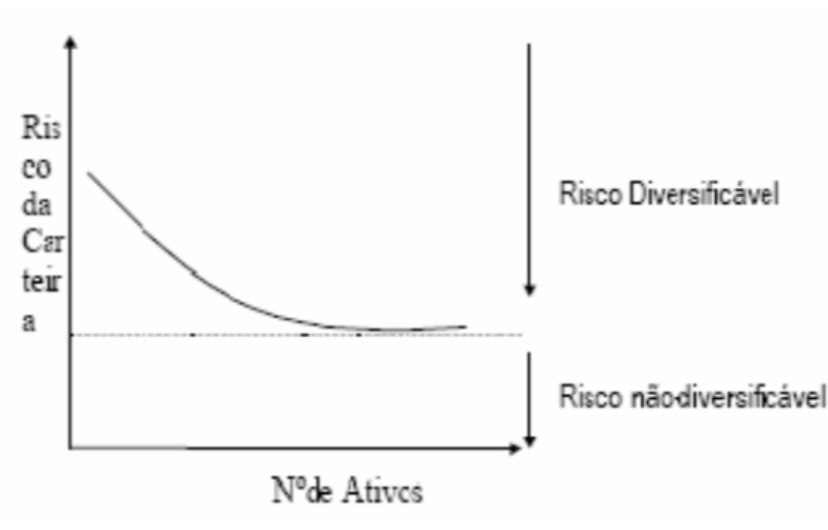 Esta basicamente representa que, quanto maior for o número de ativos da sua carteira, menor o risco total da mesma. Porém quando se chega a certo ponto, o aumento do número de ativos não gera alteração quase que nenhuma com relação ao risco que se está correndo. Claro, que isso depende do quão volátil são os papéis que compõe seus investimentos, a porcentagem da carteira que cada um representa, etc. Mas o princípio mais importante a ser destacado aqui é: diversificação diminuí os riscos. Isso é uma verdade absoluta, independente de outros fatores alheios.